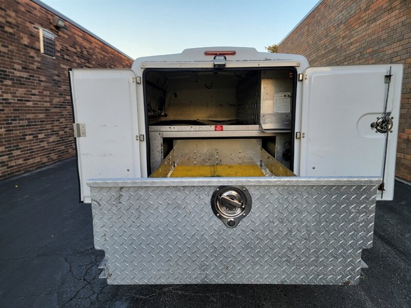 This tough and reliable utility truck is designed to handle any job. Equipped with fiberglass utility topper storage bins on both sides, it provides ample space to securely store your tools, equipment, and supplies. Whether you're on a construction site, plowing snow, or working on the go, this truck is built for efficiency and durability.